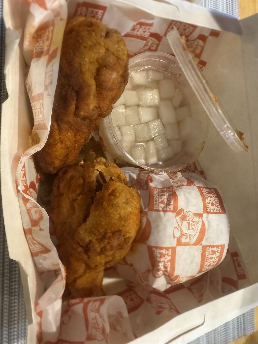 Original meal comes with 2 “chicken” legs (deep fried breaded oyster m…