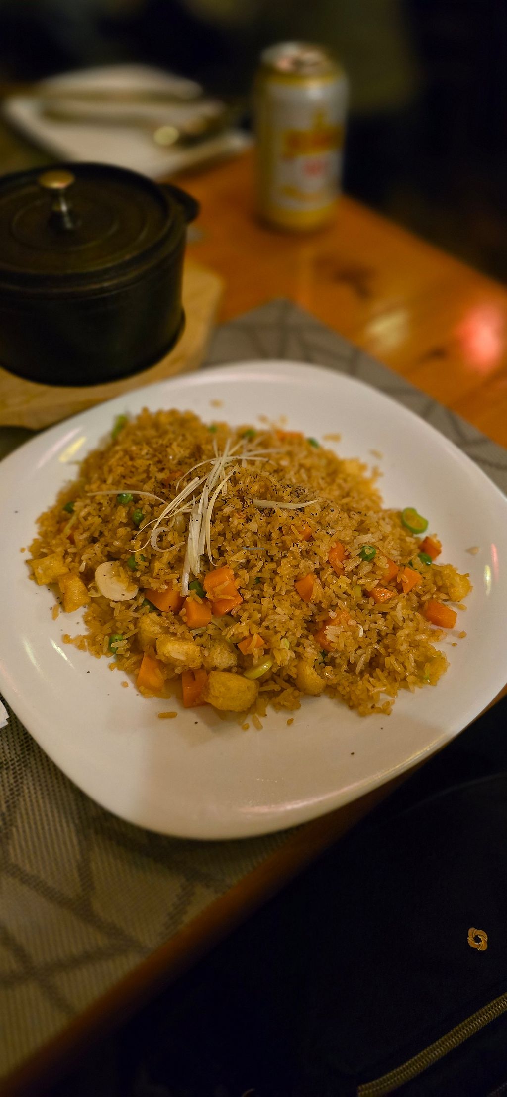 The service was here, there, and everywhere. The vegan curry was nice, but the fried noodles and fried rice were nothing special. Very small restaurant. We were lucky that they gave us the last available table, which wasn't even set.