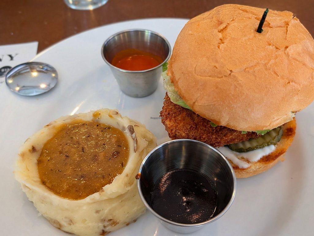 Nashville Hot with sauces on the side and garlic mashers.