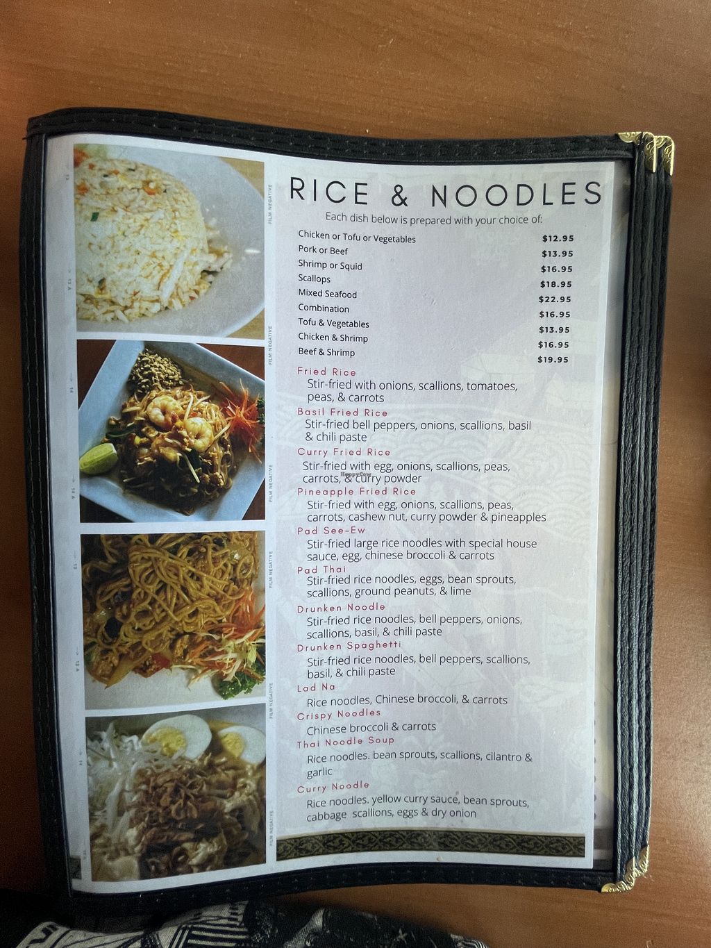 Serves meat, vegan options available. Small Thai restaurant in a shopping center. Can make a dairy free Thai iced tea with coconut milk. Food options include pad Thai without egg and spring rolls. Reported closed May 2025.
