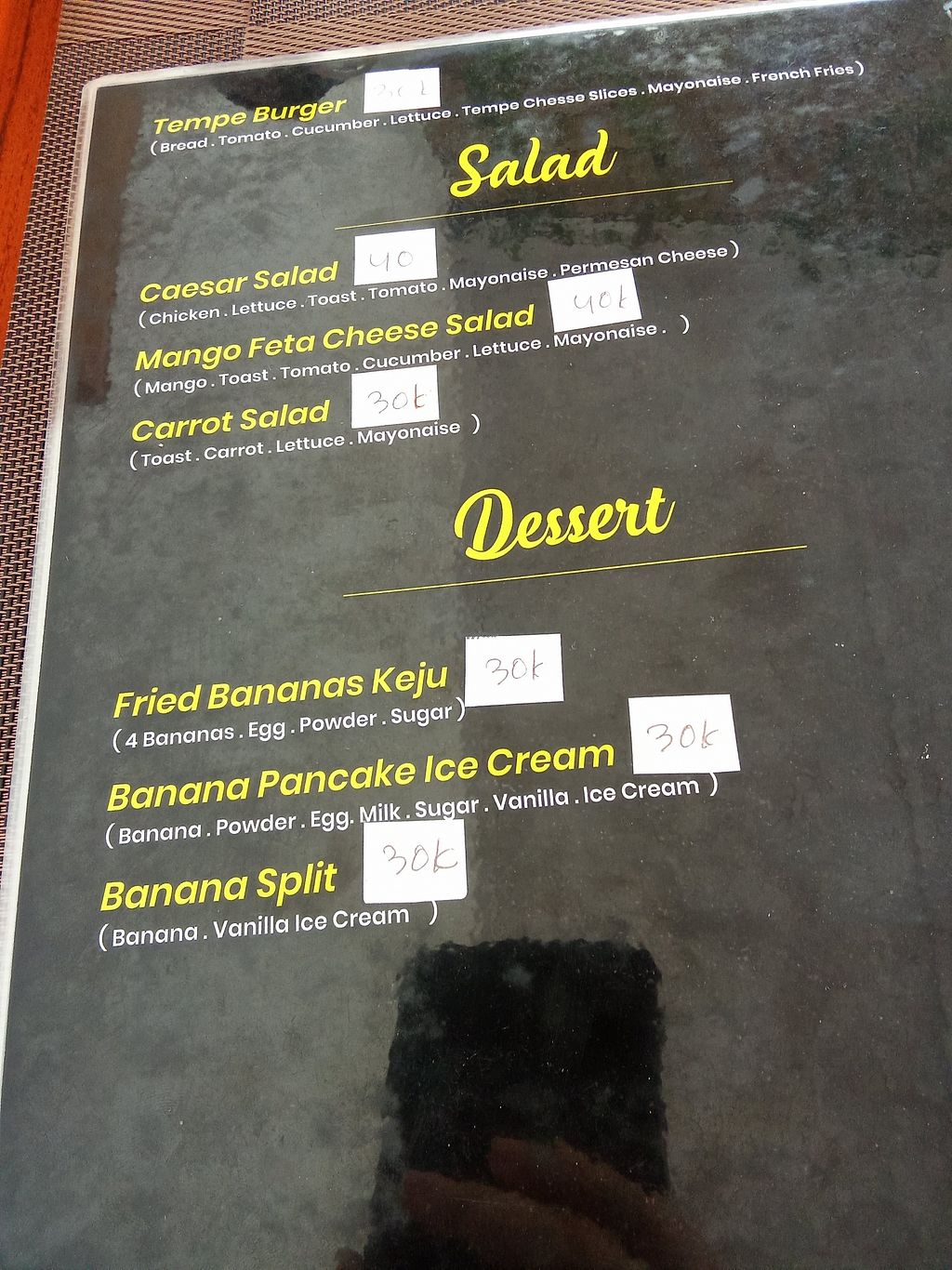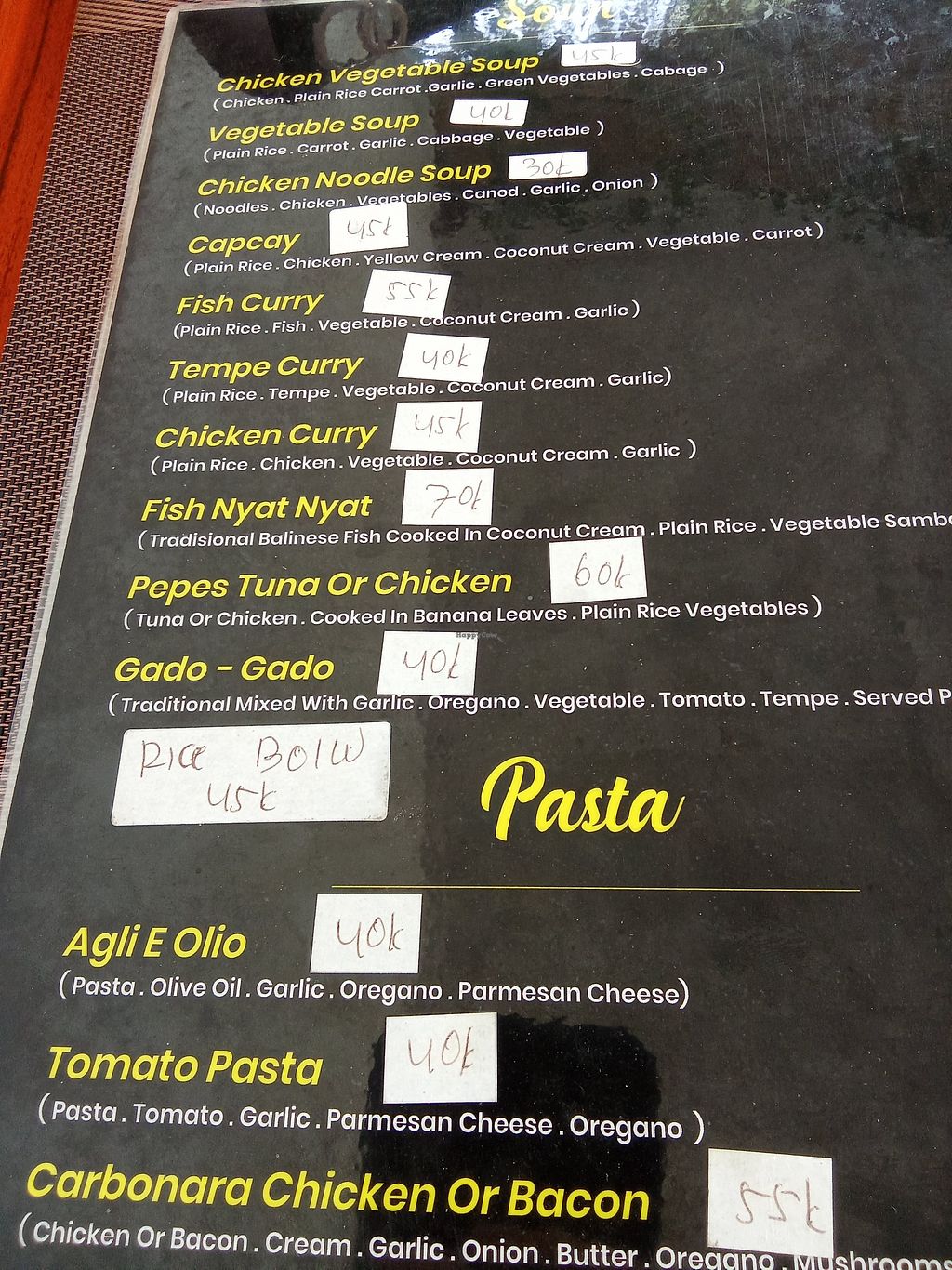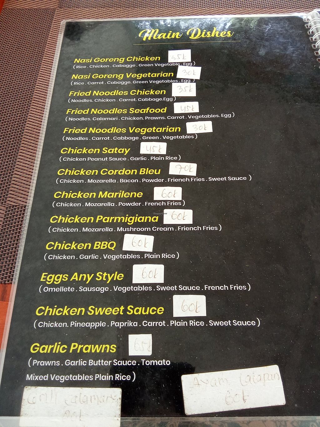 Serves meat, vegan options available. Restaurant with vegan options and wifi. Vegans can order several dishes without egg, such as nasi goreng, gado gado, fried noodles with vegetables, spring rolls, curry, tempeh bread, salads, and clear soup. Specify vegan when ordering. Open Mon-Sun 11:00am-10:00pm.