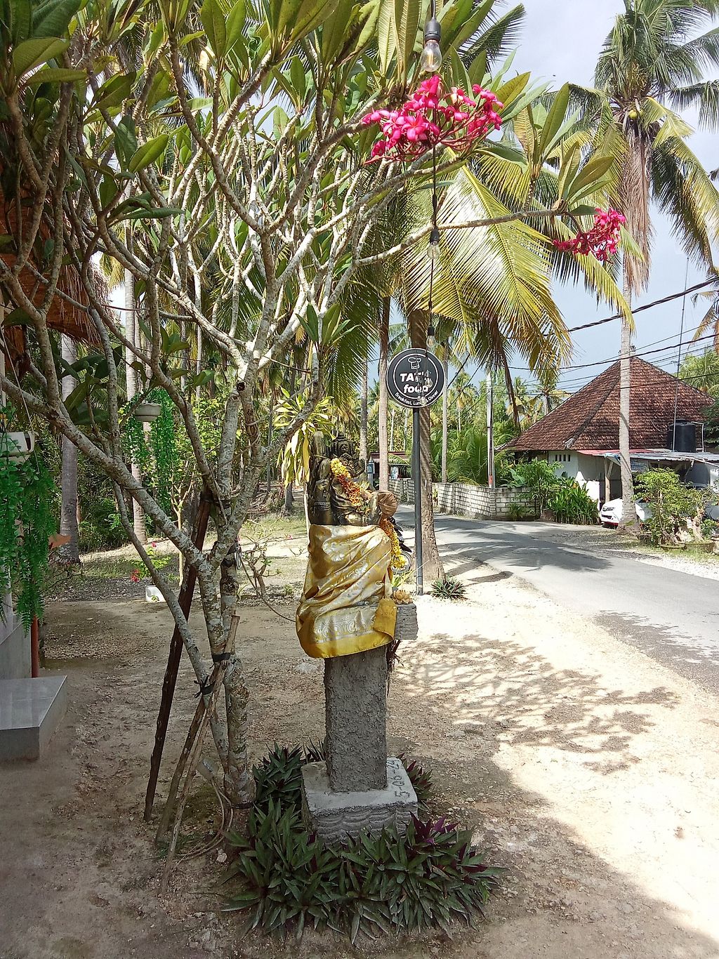 It's a bar by the road, with fresh food, lots of vegetarian and few vegan options. There is WiFi and very friendly owner, who will accommodate your requests. But make sure she understands. Fresh juices are amazing, the best food for me was clear veg soup served with rice. Great atmosphere
