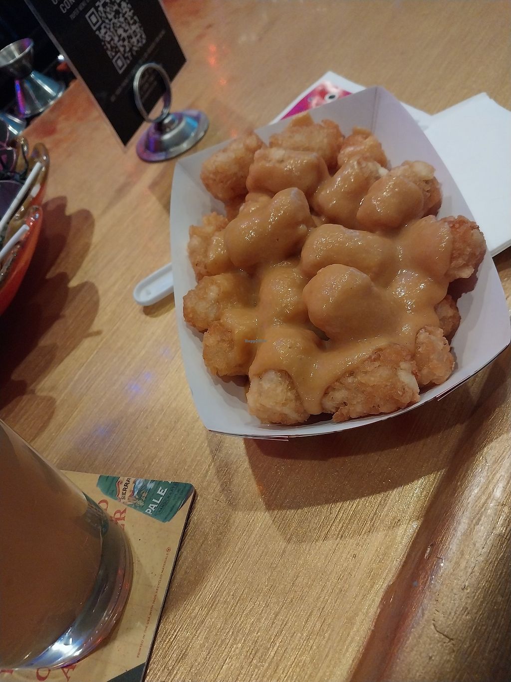 Cool bar with a great atmosphere, they have a nice selection of vegan food and the portions are huge!! The cocktails however did feel a little cheap, they were served in a plastic cup/baggie :/