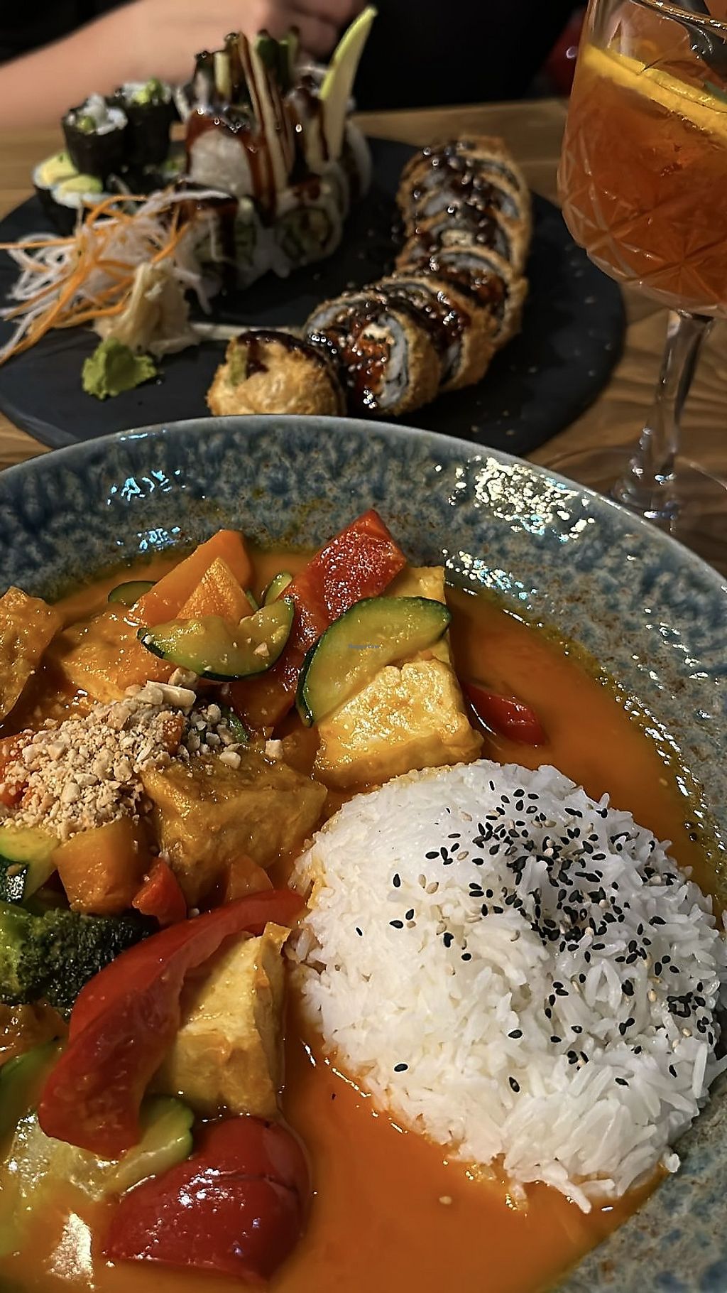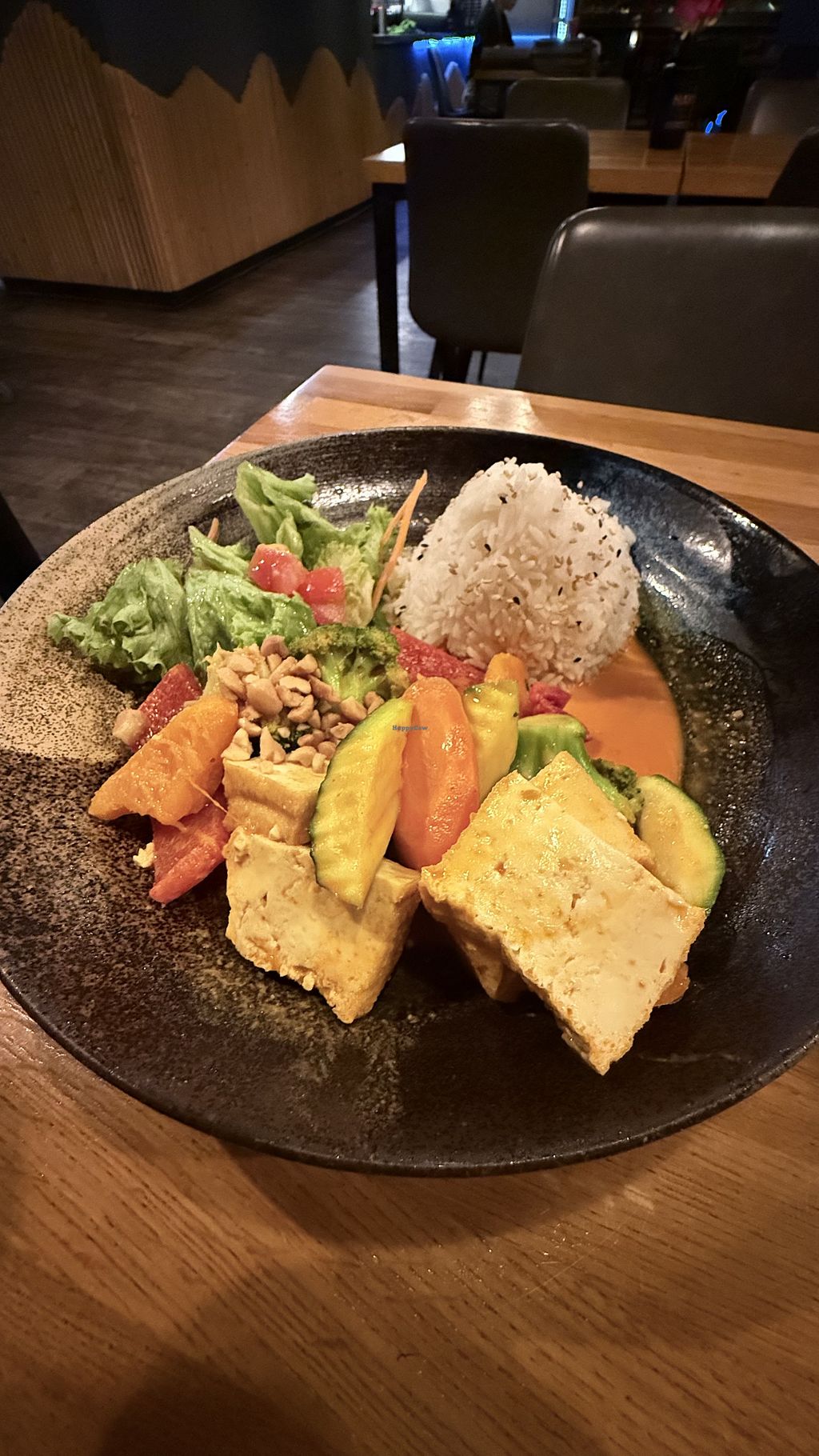 Serves meat, vegan options available. Asian fusion restaurant with vegan choices on the menu. They serve meals like noodles, sushi and curry. There are at least four vegan dishes available. Open Mon-Thu 11:00-22:30, Fri-Sun 11:00-23:30.