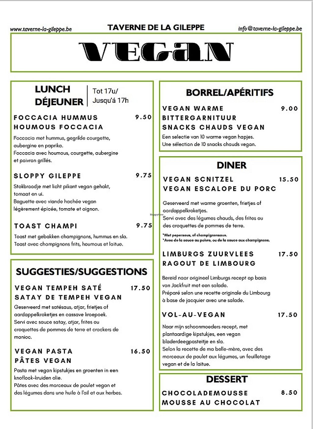 Mmm, new Vegan Menu! Come check it out @Taverne de la Gileppe!