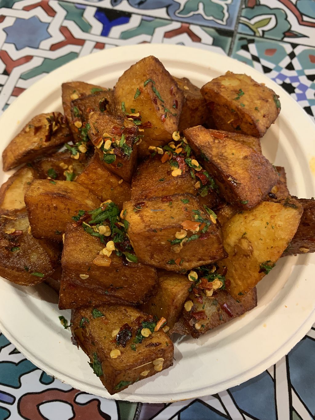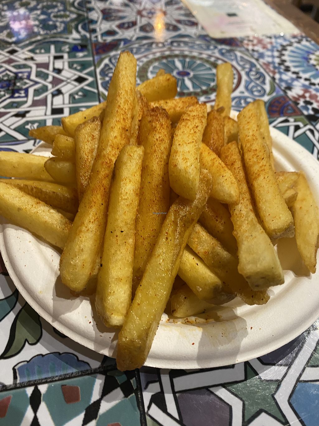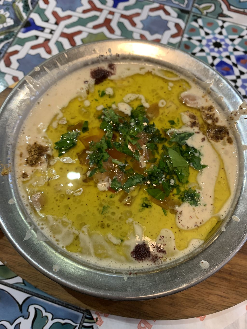 Quality fast food, lots of vegan and veggie options. Ordered baba ganouj (amazing), falafel (crispy), batata harra (spicy potatoes), houmous and fool (fava beans) which was a bit of an acquired taste with bread. Ended up with two bags of bread to take away as we got confused when ordering and thought we needed it with our starters! Enjoyed it through the week though!😄