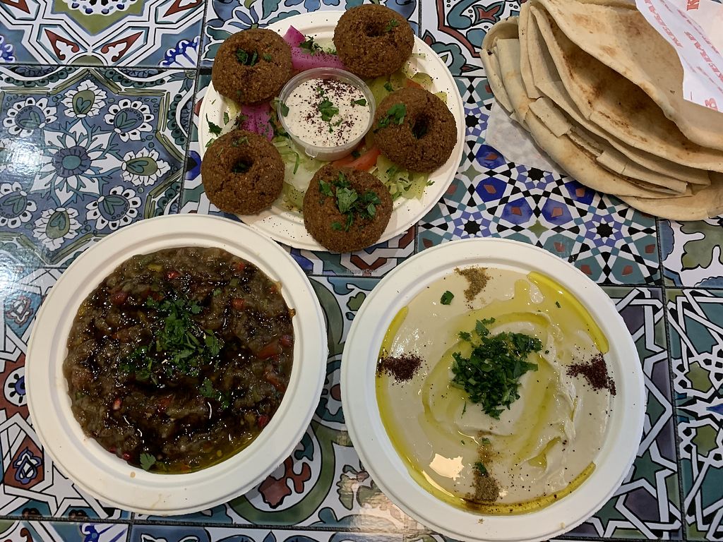 Read moreWe opted for the vegan meal deal which includes falafel, hummus, baba ganouj, Taza's famous chickpea salad, za'atar maneesh, bread and sweet sesame halawa manaa'eesh for dessert.