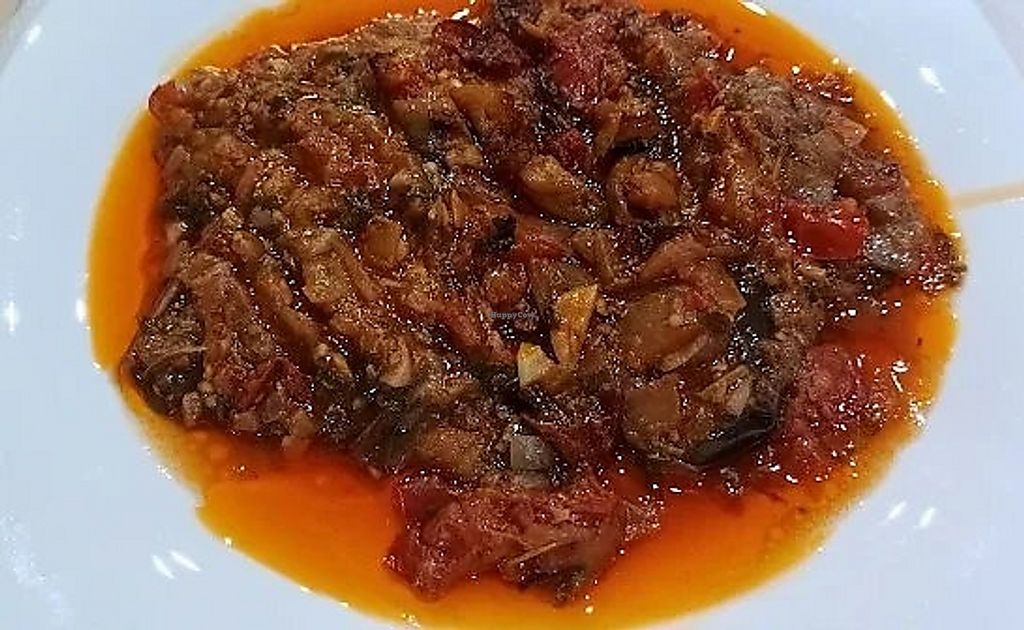 Stuffed eggplant comes with a bit of sauce