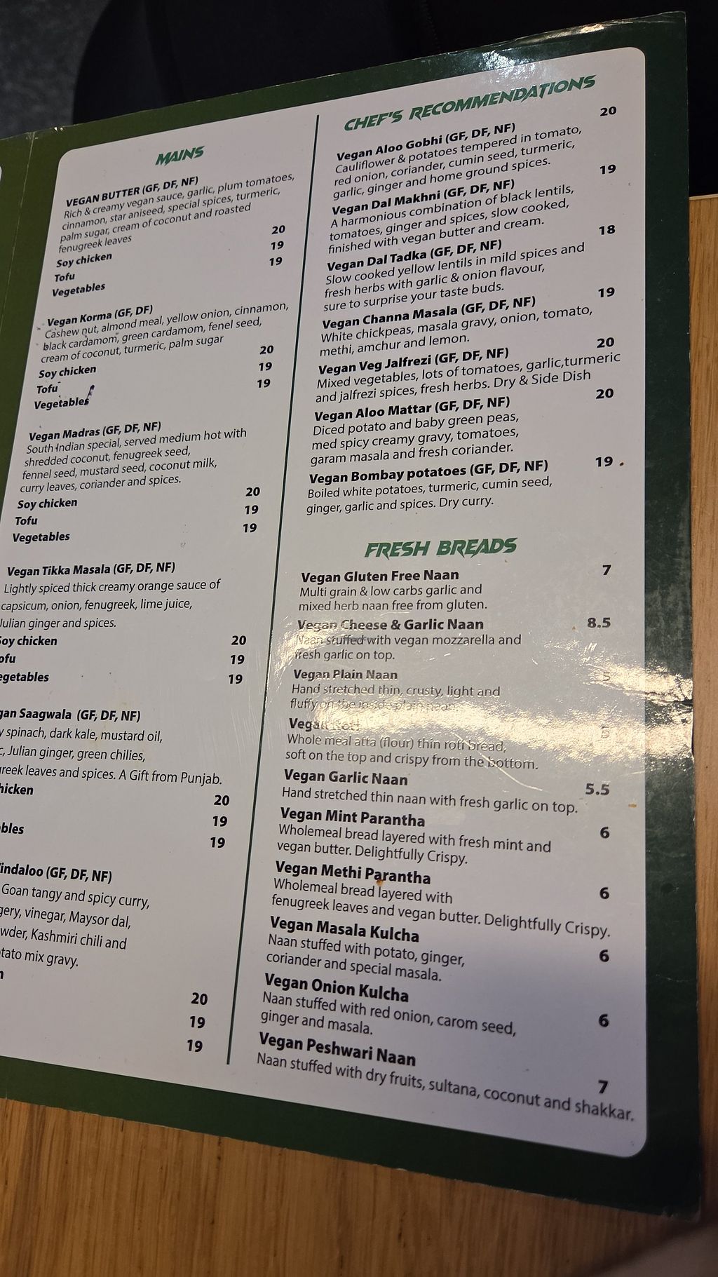 Huge vegan menu. Food tastes divine. We ordered vegan korma and vegan butter paneer( tofu). Both were delicious and unique in their flavours. This is a must visit resturant.
