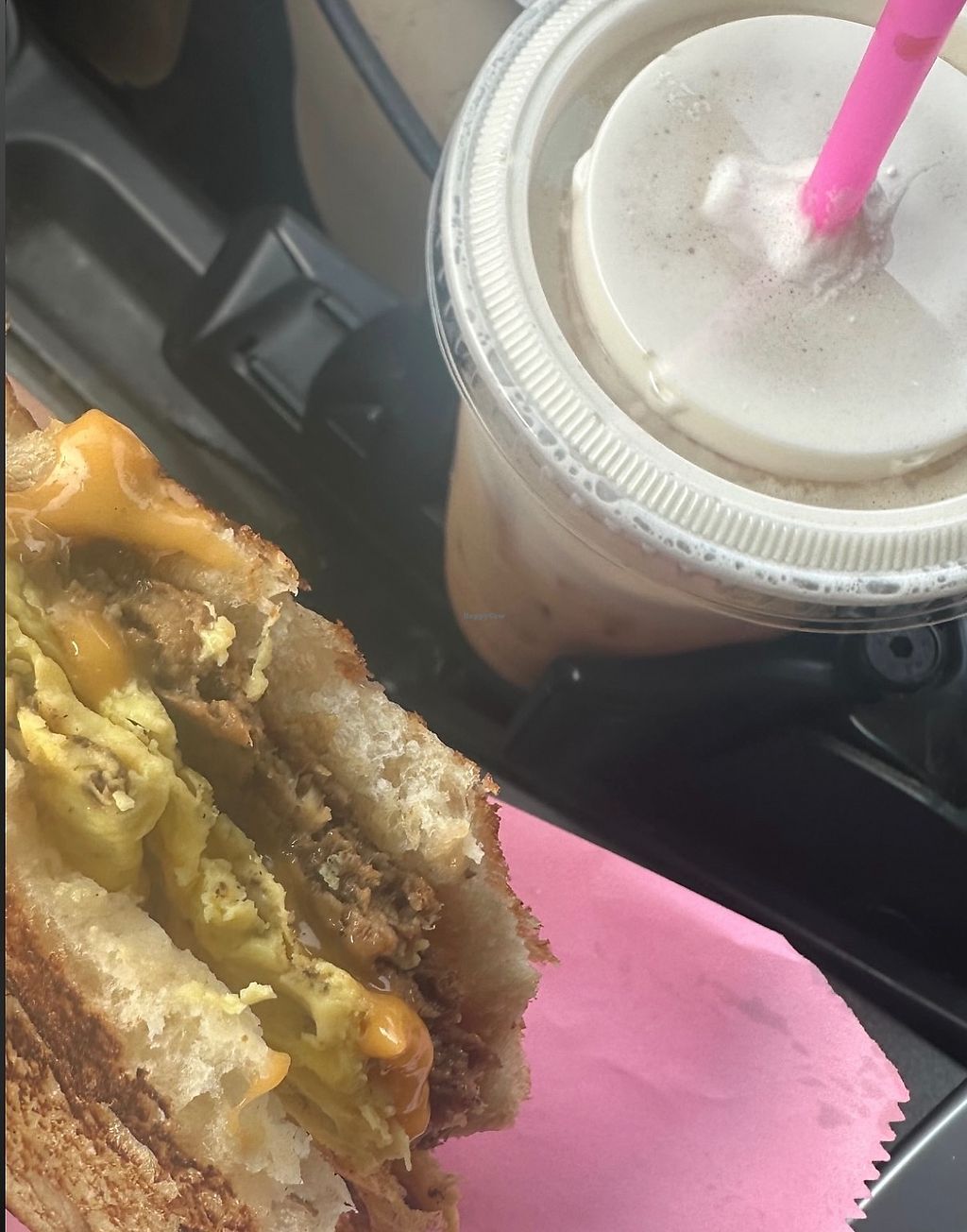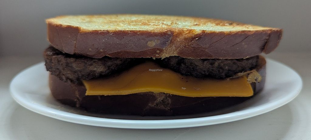 Sourdough, just egg, vegan ham, vegan cheese. Breakfast Sammy