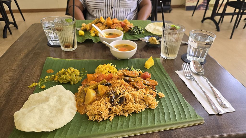 Lovely new vegan Indian restaurant with breakfast served 07:00-11:00. Lots of different sets available, but we went for the beetroot poori set and beetroot chapati set, served with dalca, and sambar. Both were freshly made to order and absolutely delicious. Perfect texture and the accompaniments were zingy, a little spicy, and perfectly balanced. We also had paniyaram (rice flour dumplings) served with the same zingy sambar but also a slightly sweet coconut chutney which was AMAAAAAZING. Finally, we had Thai coffee made with oat milk which was comforting and the perfect drink to wash down our delicious breakfast. They also do a lunch set 11:00-16:30 (I believe) and have a dinner menu available from 16:30. It’s a lovely space and the staff are very kind and helpful, with recommendations and information happily offered as it was our first time visiting. We will absolutely be back for breakfast, and can’t wait to try lunch and dinner in the future, too!