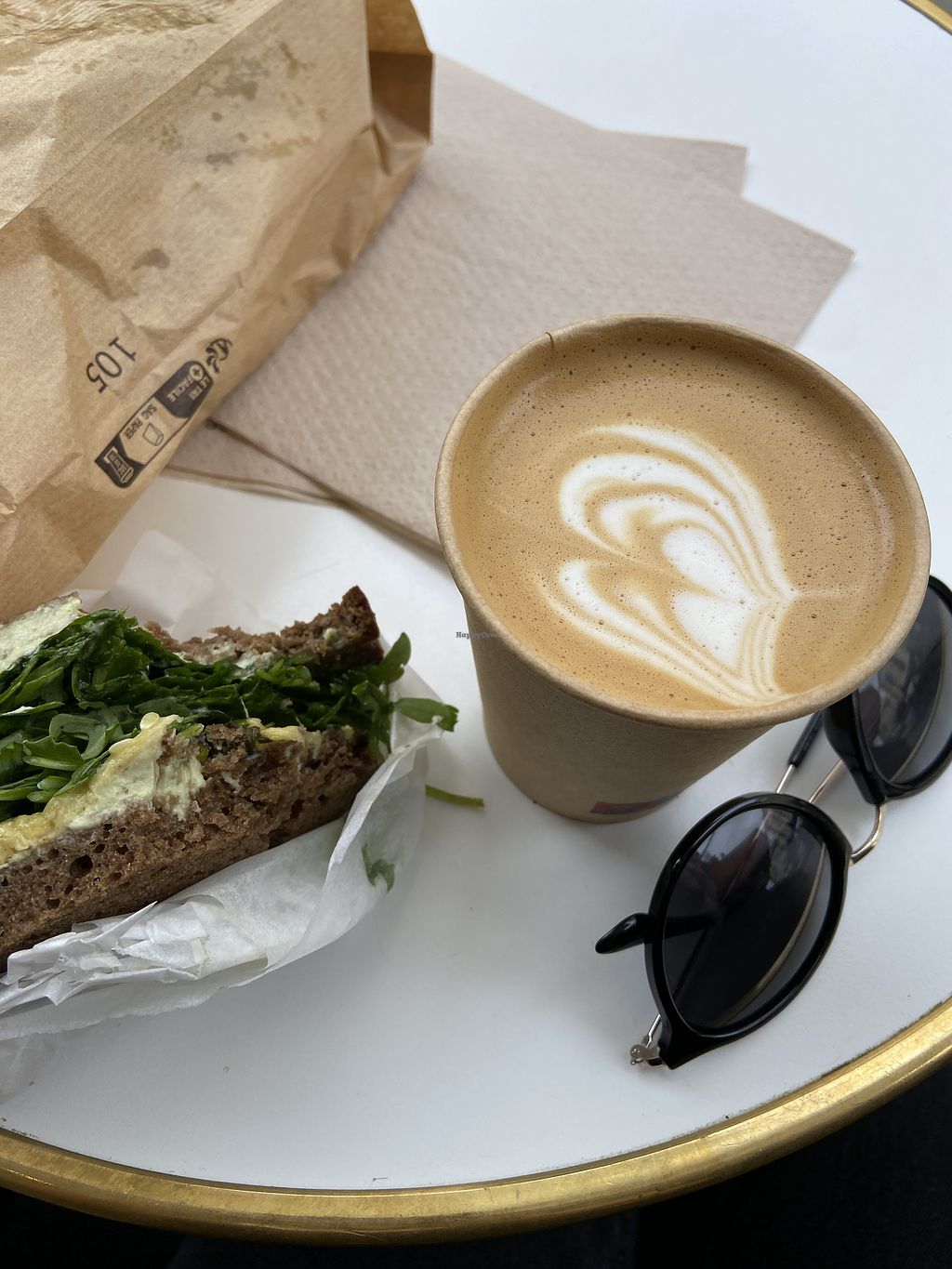 Nice spot with good vegan sandwich options (see pictured). Modern style cafe with quite a few people working from the cafe, so not quite traditional French vibes but still nice. Friendly staff. Higher cost to eat in.