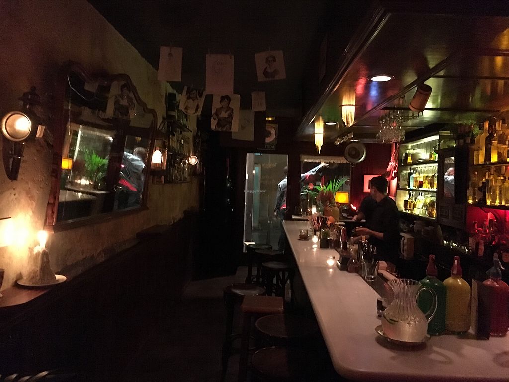 Vegetarian tapas and cocktail bar. Has 2 vegan cheese sandwiches, hummus and olives. Cocktail bar offers vegan alcoholic drinks and organic wine. Hosts live music and comedy shows. Reported closed, Mar 2019.