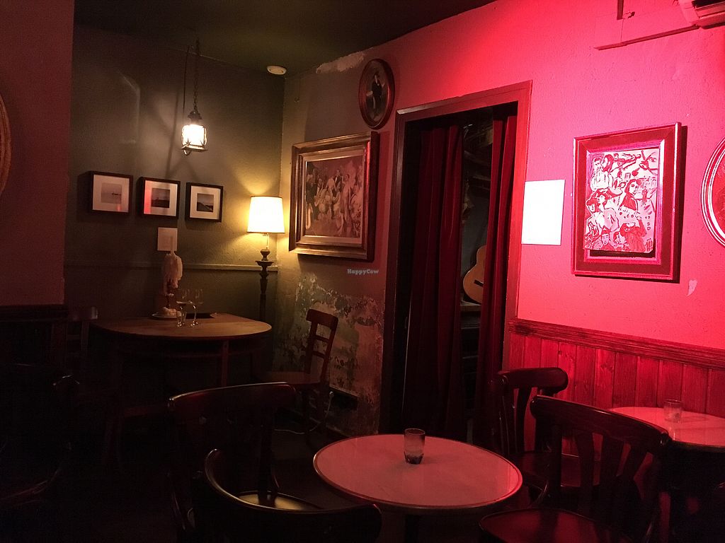 We went last night and were told they had stopped doing the tapas (as a permanent thing not just that night) but were still doing sandwiches (vegan options were hummus and avocado/salad and roast veg) plus olives and hummus bowls. The sandwiches were tasty and filling, the servers were so nice, friendly and cheery, and the drinks menu is great - including a selection of non-alcoholic cocktails. The atmosphere was unique...dark lighting, eclectic (but good) music choices and an array of different paintings and wall hangings giving the place personality. We had a great time there despite expecting tapas!