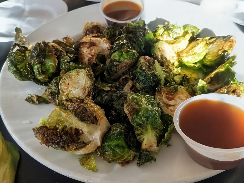 The menu has quite a few vegetarian options, but only the Brussels sprouts (appetizer) are vegan. A couple things on the menu looked close to vegan or vegan modifiable, but were not labeled as such. This place could be much better and it wouldn’t be hard to get there! We waited quite a while to be seated and for our food after ordering. No splitting tab, not even in half, no AMEX.