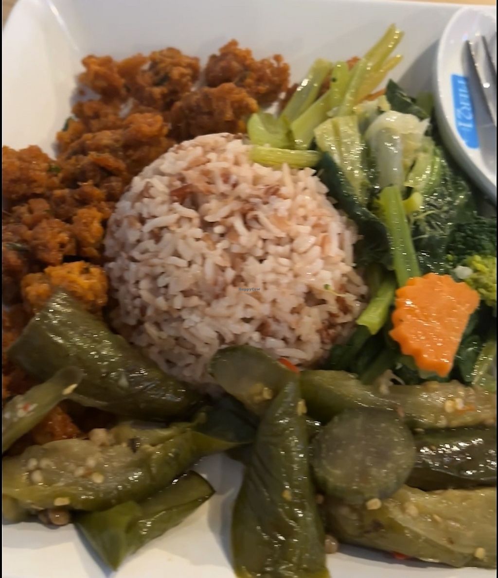 Read moreIt cost me a whopping 87 baht total for a meal of brown rice with 3 veggie mains 40 baht / a drink of a fresh berry smoothie 32 baht / and a coconut milk ice cream cone 15 baht. Everything tasted great and I walked away content and full for only 87 baht!!!