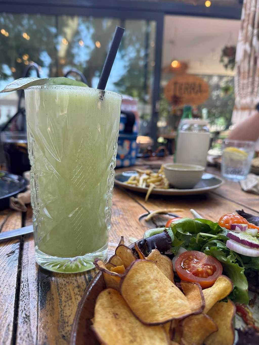 Serves meat, vegan options available. Restaurant offering bio food with Mediterranean ingredients. Vegan options include a vegan burger, toasts with tofu and avocado, and hummus. Features outdoor seating. Open Mon 10:00-20:00, Tue 10:00-07:00, Wed-Sat 10:00-19:00, Sun 10:00-20:00. Closed Mon.