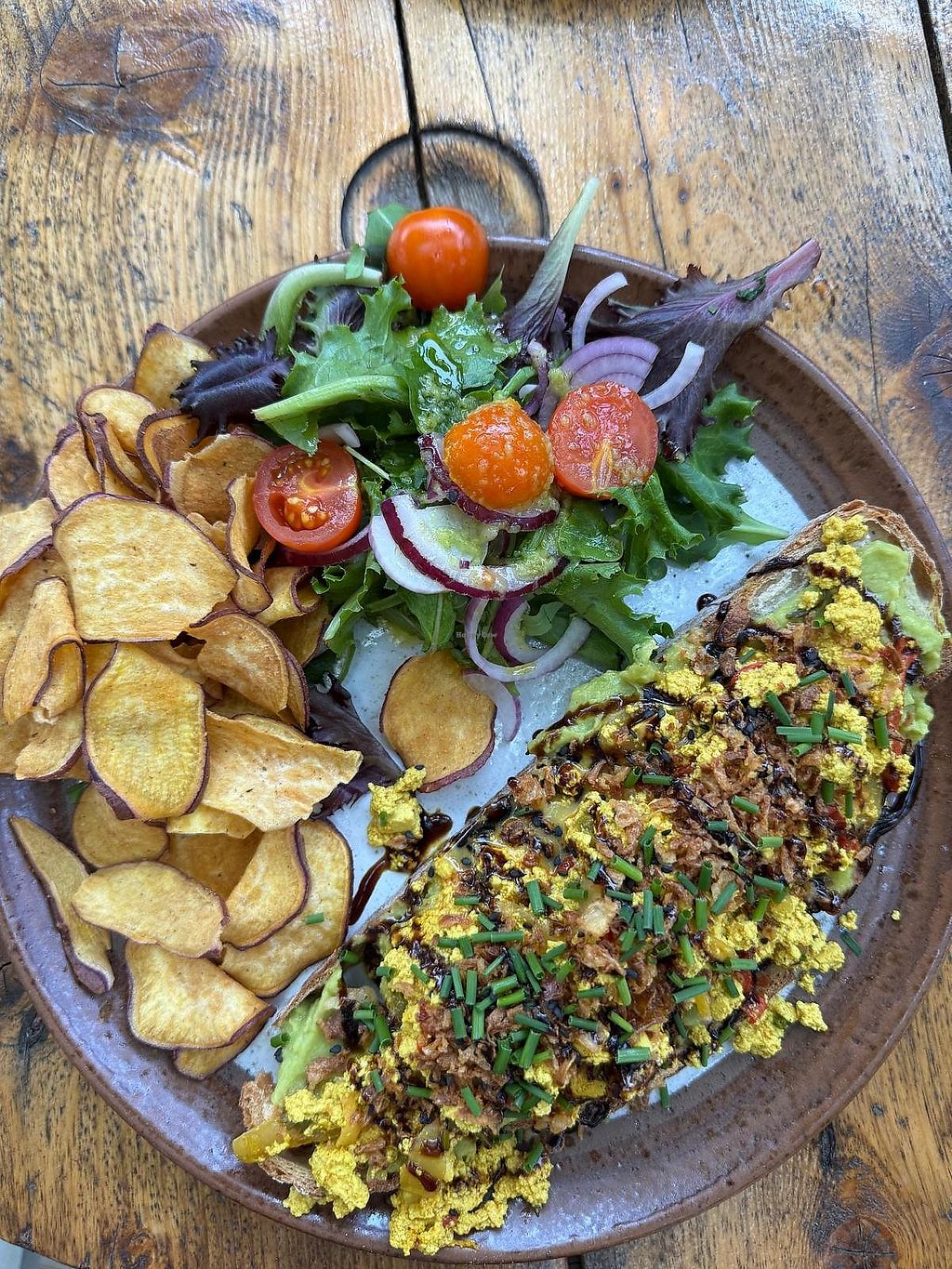 Vegan options are nice, such as tosts or burger. Other ovolacto veg options are available.