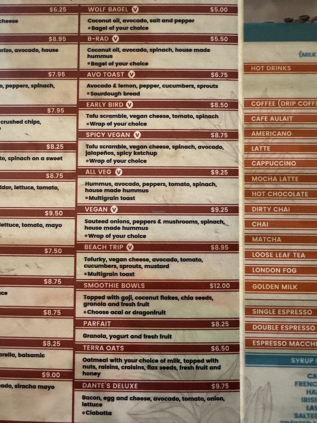 They have plant based (milk, smoothies, tamales, empanadas,sandwiches, soups, breakfast items & baked goods).