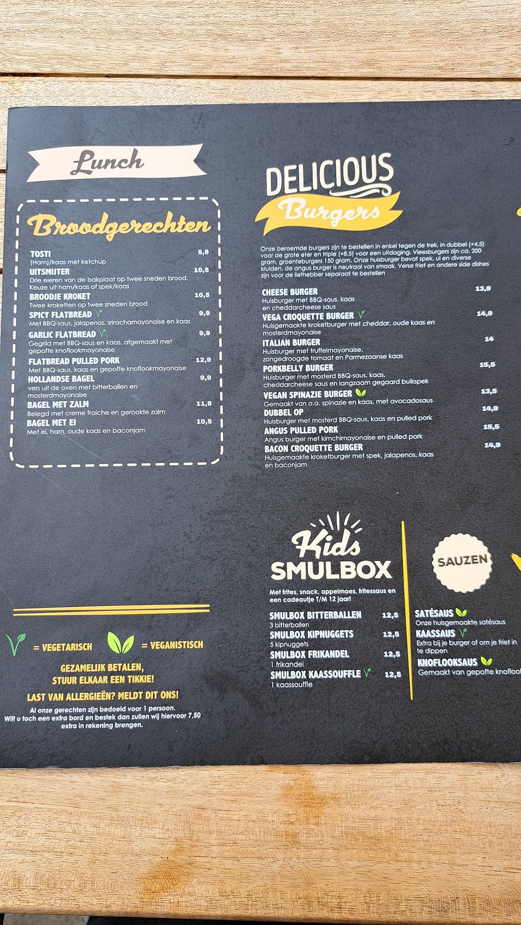 Meerdere vegan opties, staan duidelijk op de menukaart. Spinazie burger was heerlijk! Kom zeker nog eens terug om de andere burgers te proberen. Er is ook een leuke midgetgolfbaan bij. Vriendelijke bediening.