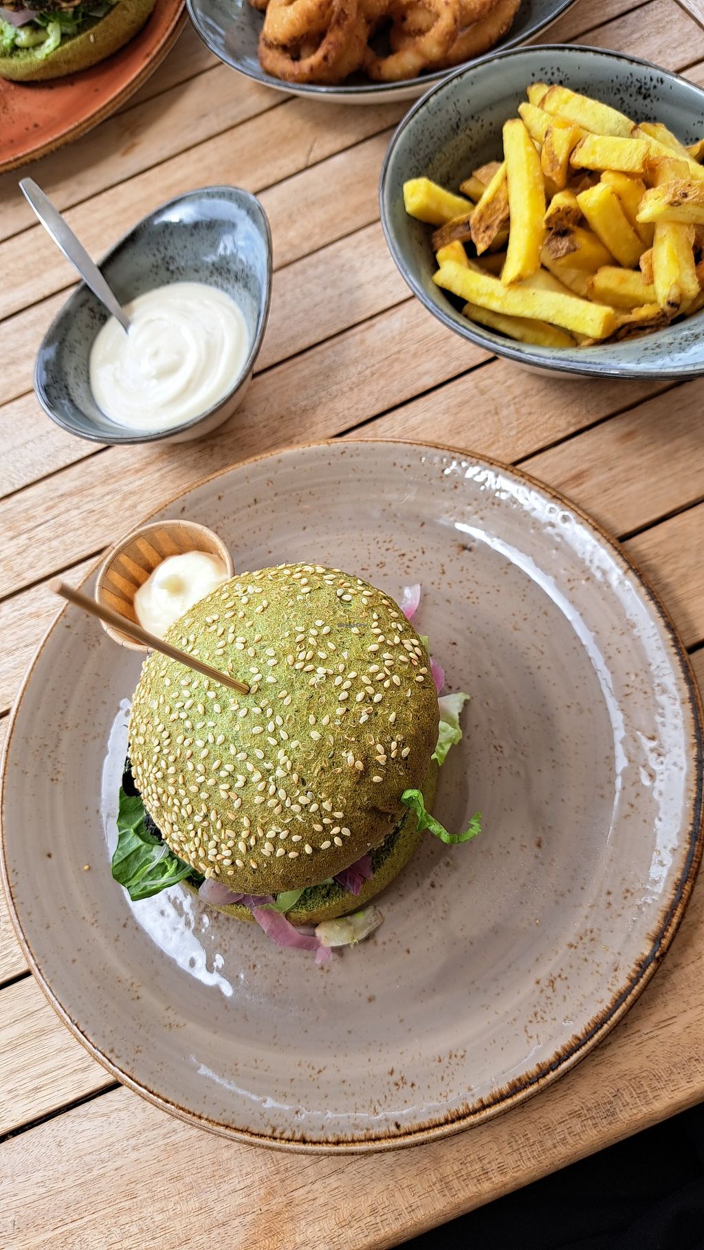 Gezellig minigolf spelen en daarna lunchen. Vegan burger met spinazie, toppertje