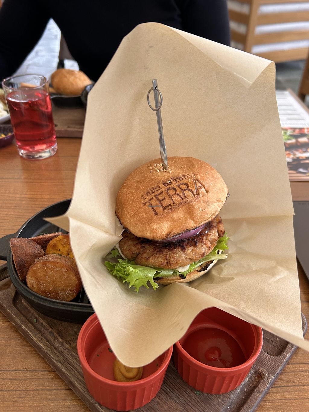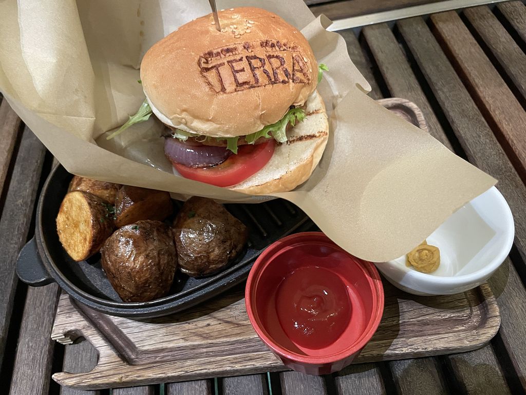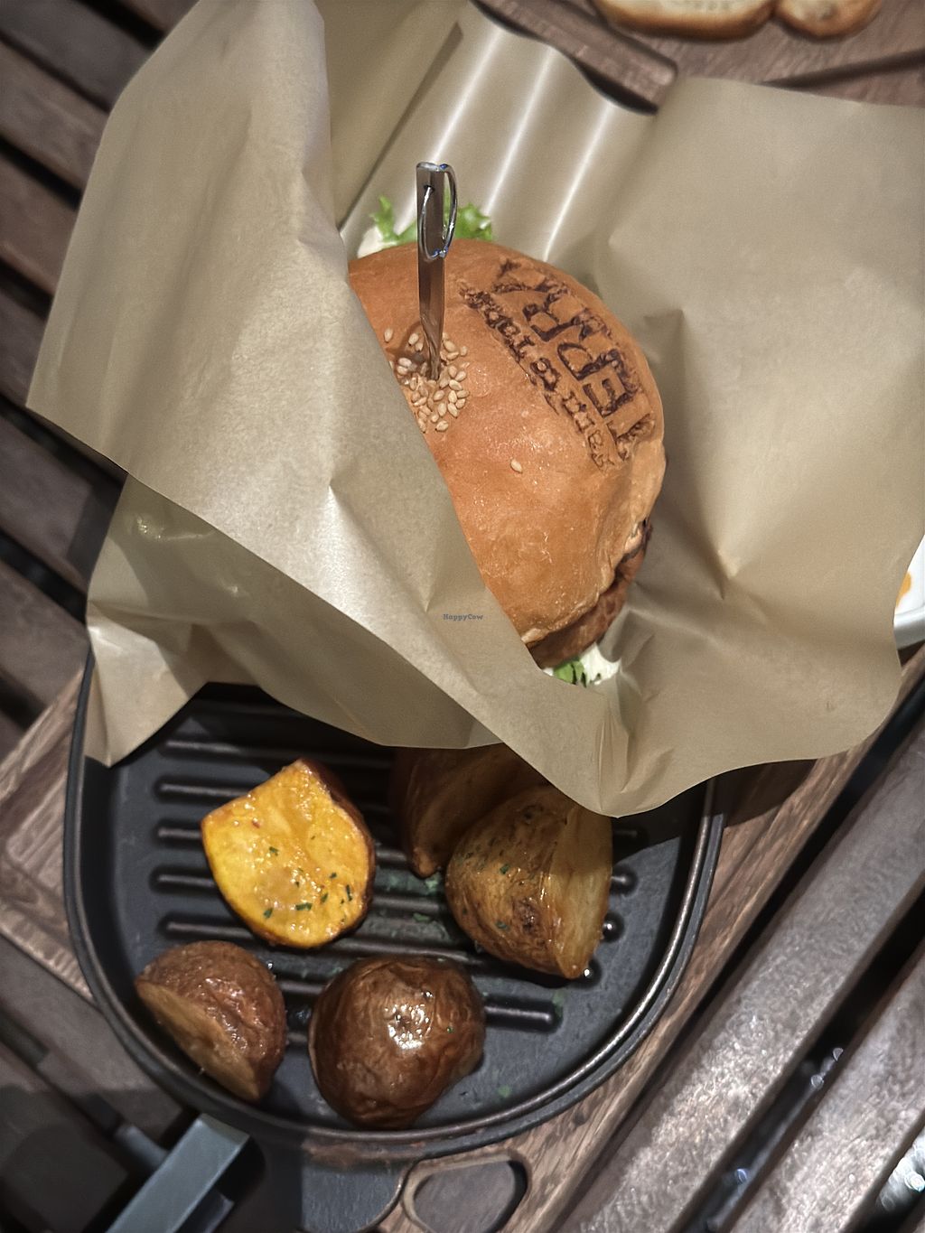 Had the vegan burger for lunch. The burger is a good size but no flavor and a very mushy patty. Potatoes were great.