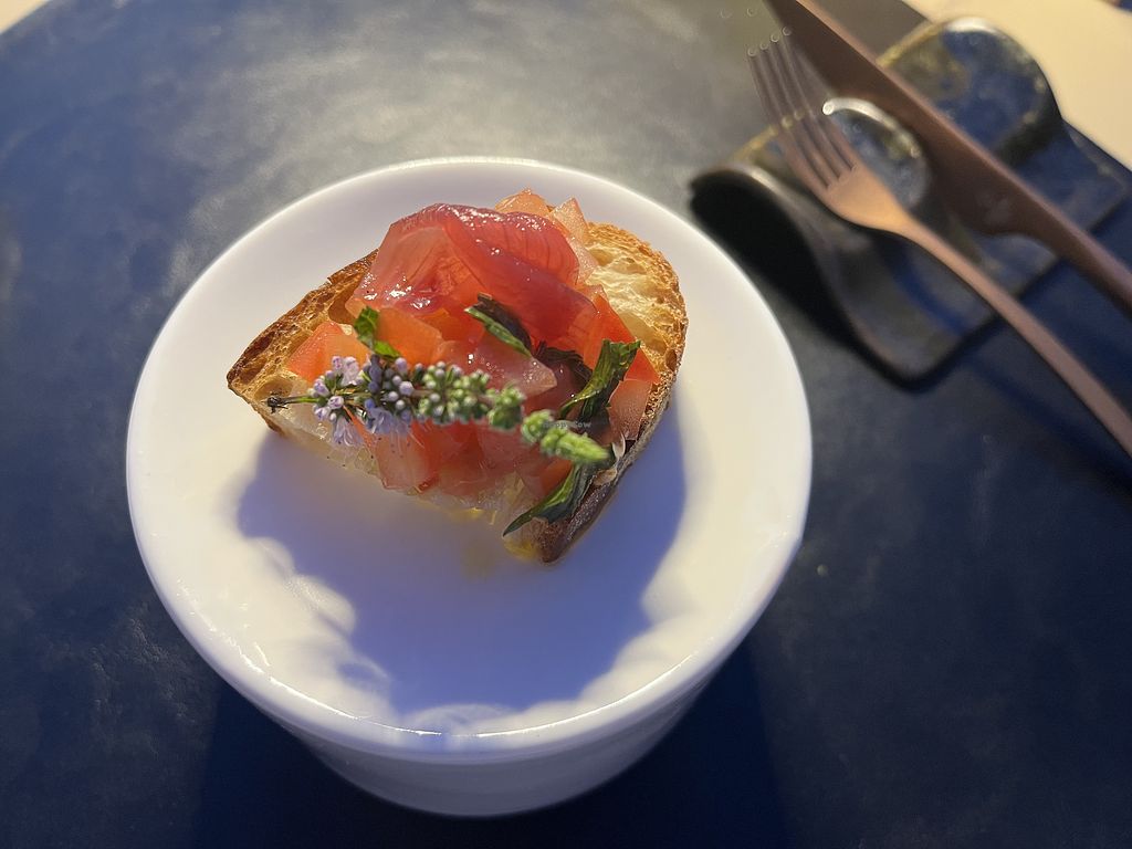 Read more1. Canapé bruschetta with tomato and pickled onion