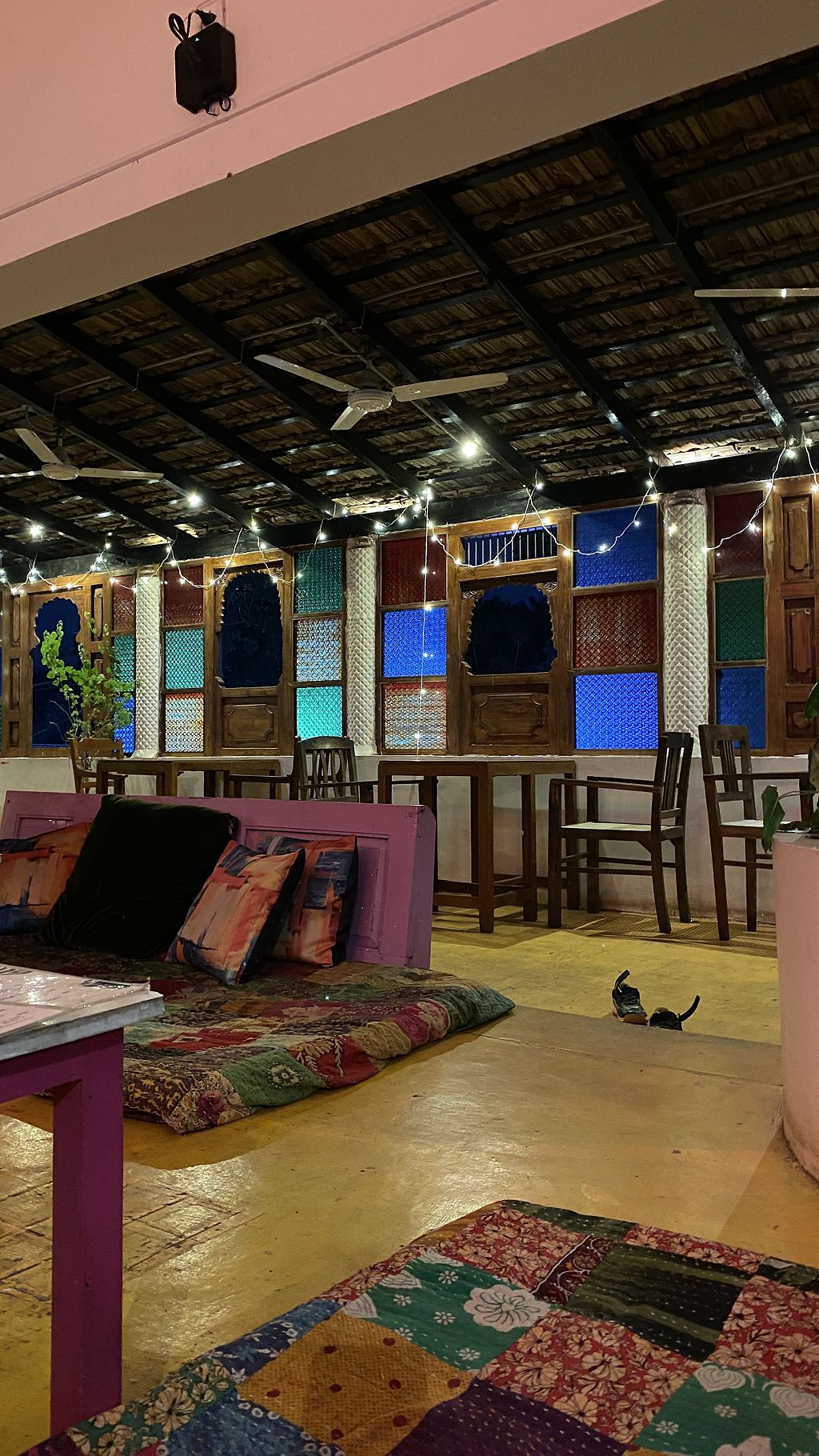 what an ambience, the wood work of Rajsthan in milieu of Pondi's weath…