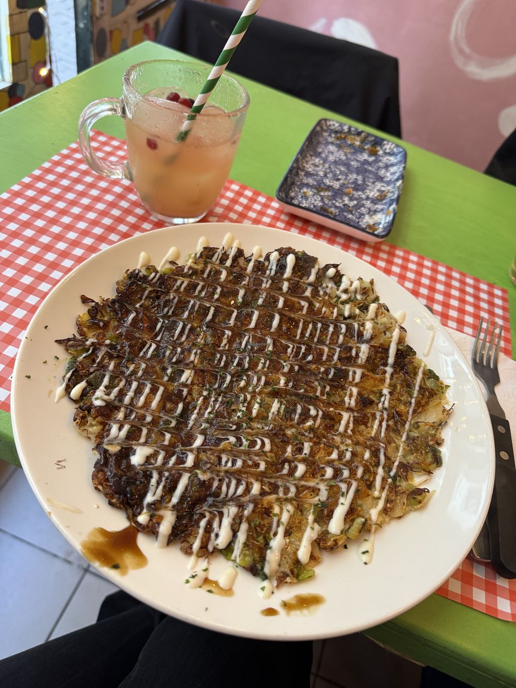 What to choose? Such a bountiful menu. I had the Jamaican plate, which I enjoyed, and my friend had the okonomiyaki. She loved hers too.