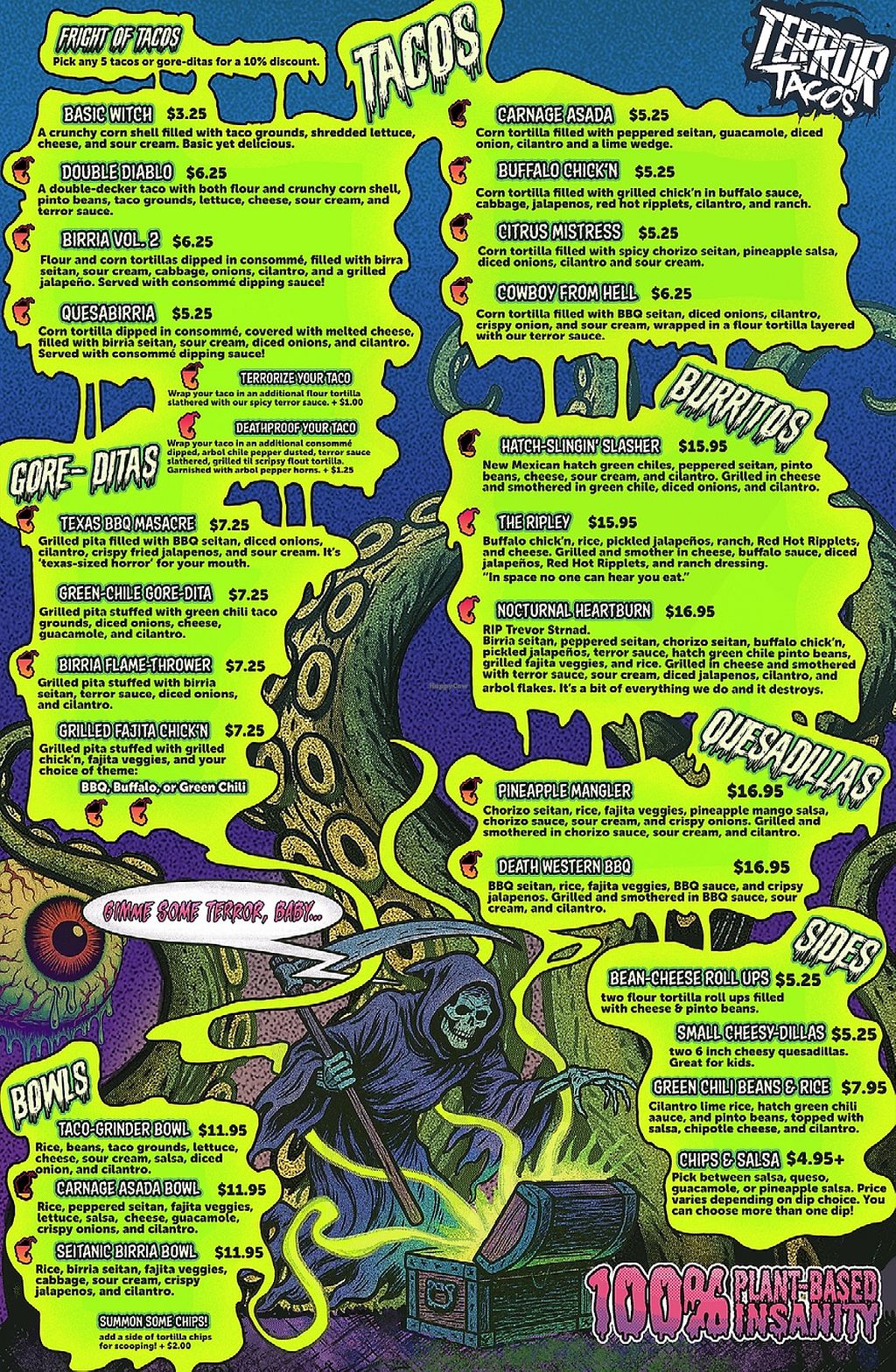 ltr: birria flame thrower, deathproof cowboy from hell, 2 carnage asad…