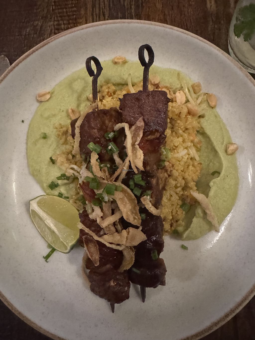 Black and white sesame seeds and rice crusted Uai tofu, black rice wit…