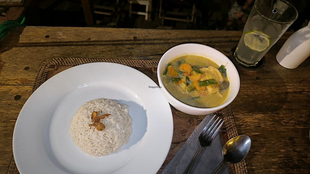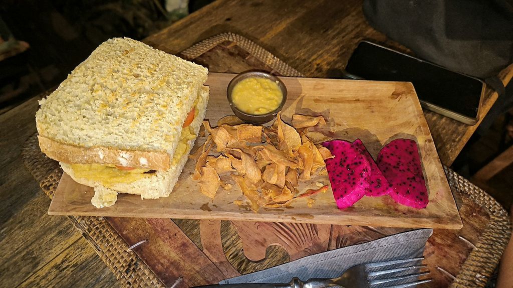 Serves meat, vegan options available. Restaurant located in an eco boutique resort. Offers a predominantly vegetarian menu. Vegan items include dumplings, salads, sandwiches and Indonesian dishes. Has a weekly vegan Indian night. Please update hours if known.