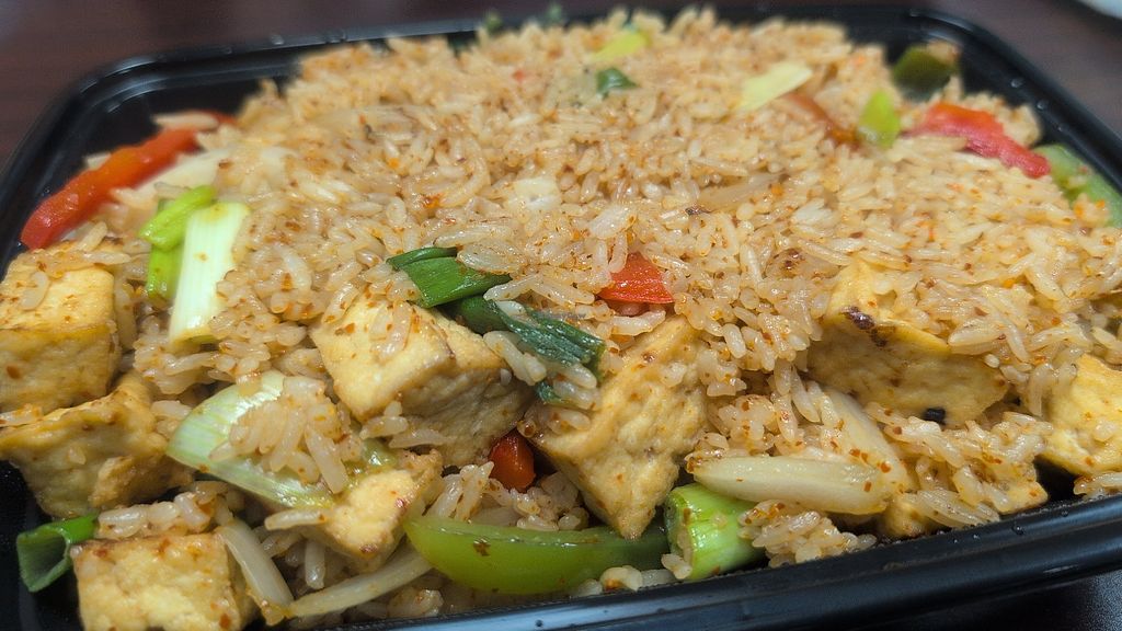 2025-05-09 Update: I had it delivered this time. Their Toast Tab is set up to allow for substitutions and comments so it's easy to veganize their dishes. I also asked for "Thai spicy" spicy fried rice this time. They certainly did not disappoint. The takeout container is full to bursting and the rice is nice and spicy.