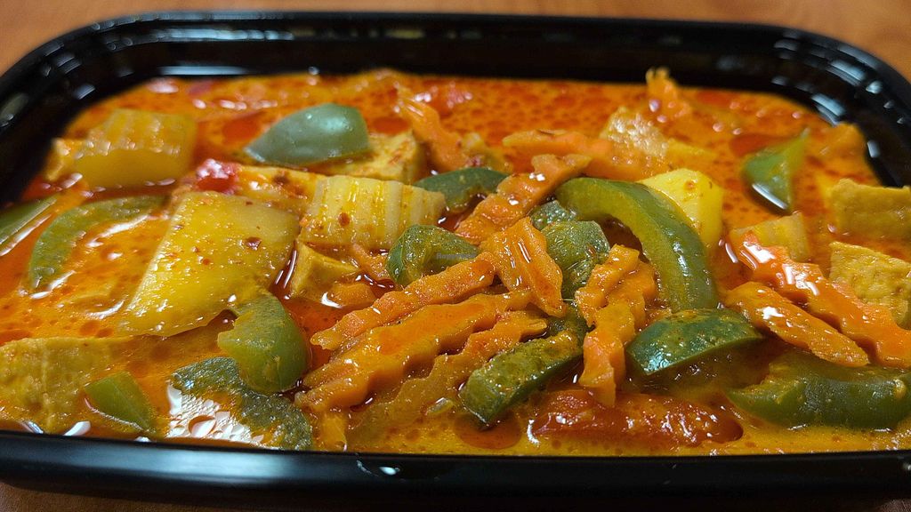 I got the green curry (specify vegan). Spice level three was a little hotter than level three at other places.