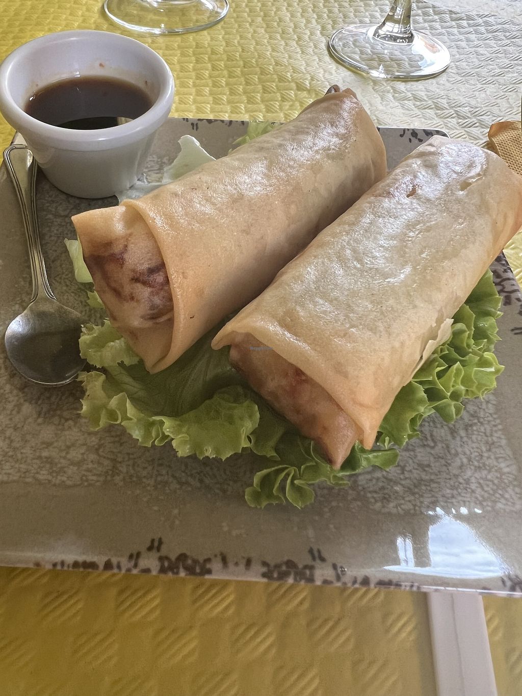 The food was fab. I had to get my vegan passport out but once the waiter read it the food was easy. Veggie spring rolls and a gorgeous red curry with tofu.