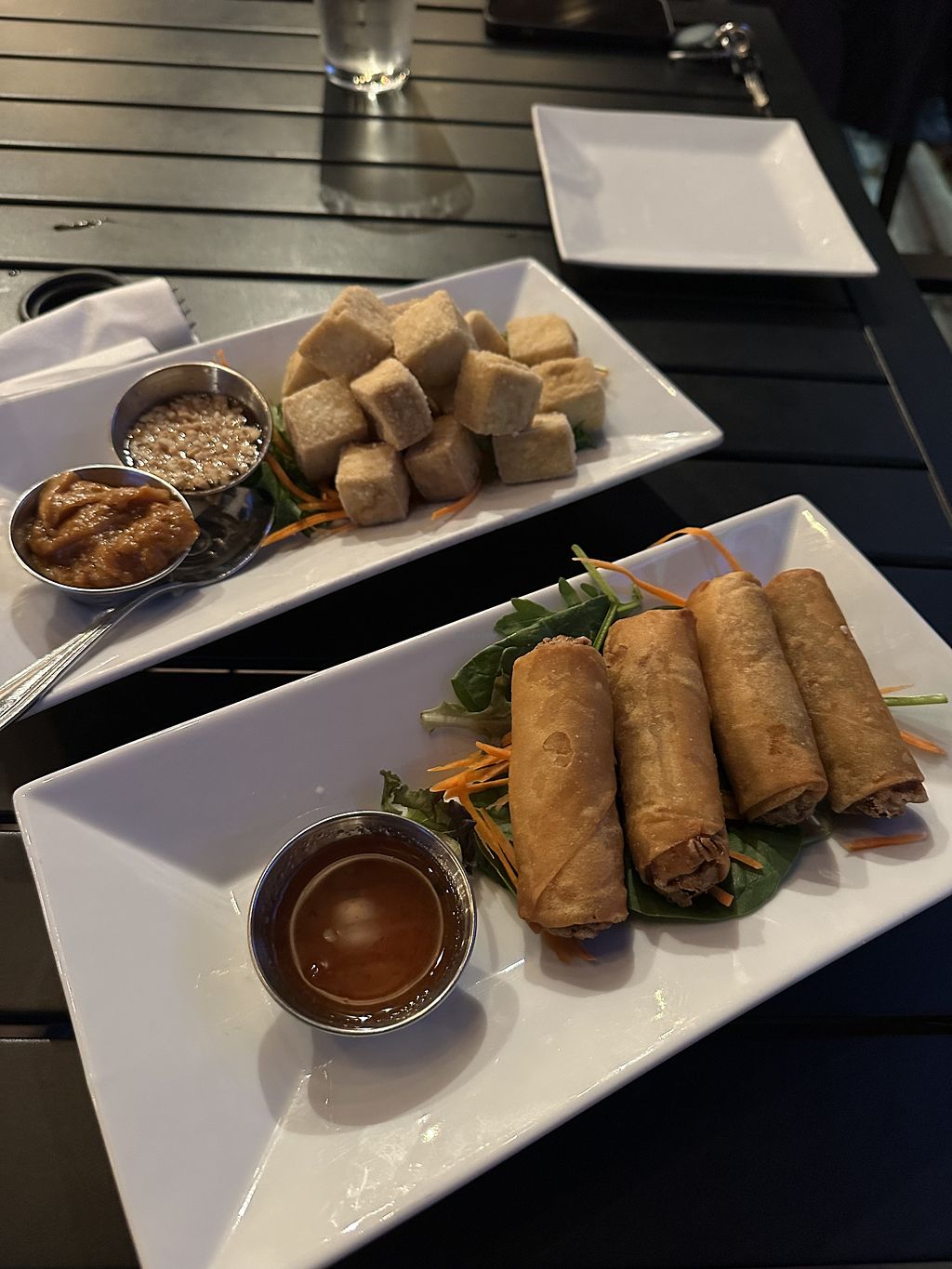Not a ton of choices here in town. This was a good choice having dinner here. We tried the fresh rolls and they were the best we’ve had. I had the Massaman Curry (GF) potato, carrot, onion, peanut, coconut milk and it came with rice. Ordered med spicy. Could have used more spicy😜 It was good in flavor.