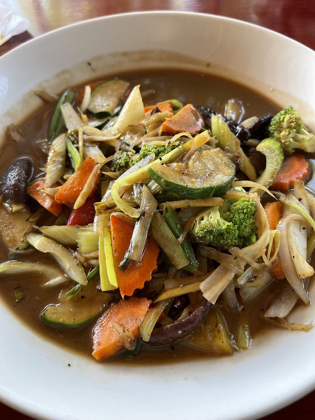 Edit- originally we thought the curries were vegan, but they have fish sauce. There is ONE veggie dish that comes vegan naturally and honestly it’s very good. Says “bean sauce” which seemed off putting but was delicious. We also ordered the spring rolls without shrimp. Pretty expensive but good