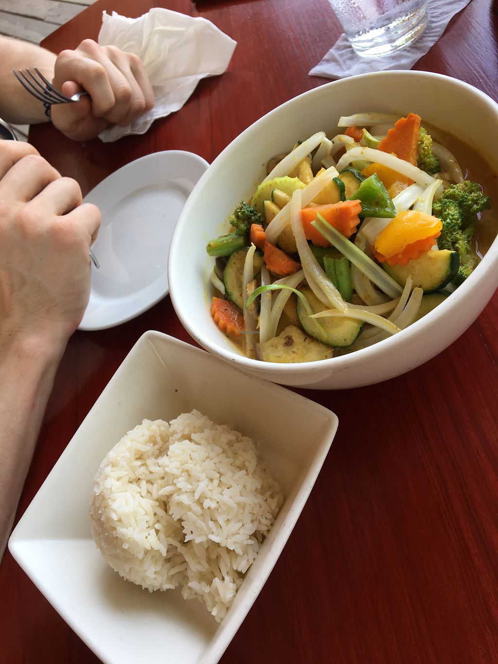 We had a delicious dinner. Crispy fried tofu, veggie pad Thai and two different curries. Everyone was satisfied. Best meal of our trip!