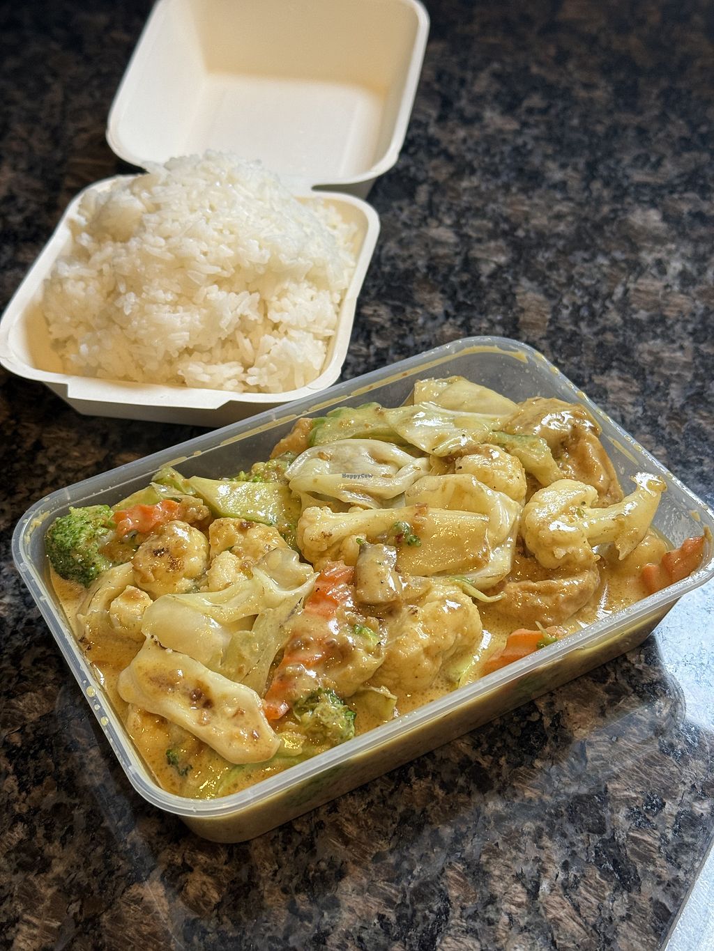Garlic and Black Pepper tofu stir fry with jasmine rice and green tea …