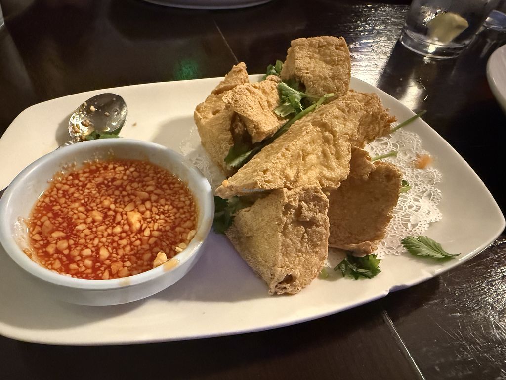 At the back of the menu is a vegetarian menu that has many options to modify vegan. Very good Thai food. We ate the fried tofu, massaman curry, veggie fried rice (no egg, add tofu). Busy restaurant but they moved through pretty quick