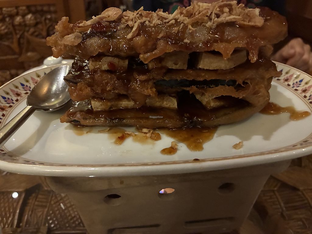 A tasteful place with clearly labeled vegan options (starters and mains). Friendly staff. We had the vegan green curry, the vegan pad thai and an amazing dish called Tao Hu Sauce Makham (tofu and aubergine glazed with tamarind sauce). They offer a vegan thom ka soup, too.