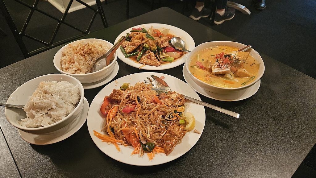 There didnt seem to be anything else in town for vegan options. Friendly staff. There was a small blackboard with vegan options (all $15.90 for a main and is a large portion), which was great to see. Selection of stir fry, noodle and curry dishes, which is tofu and veg based, that state no egg, fish sauce etc. Quick service and very fresh.