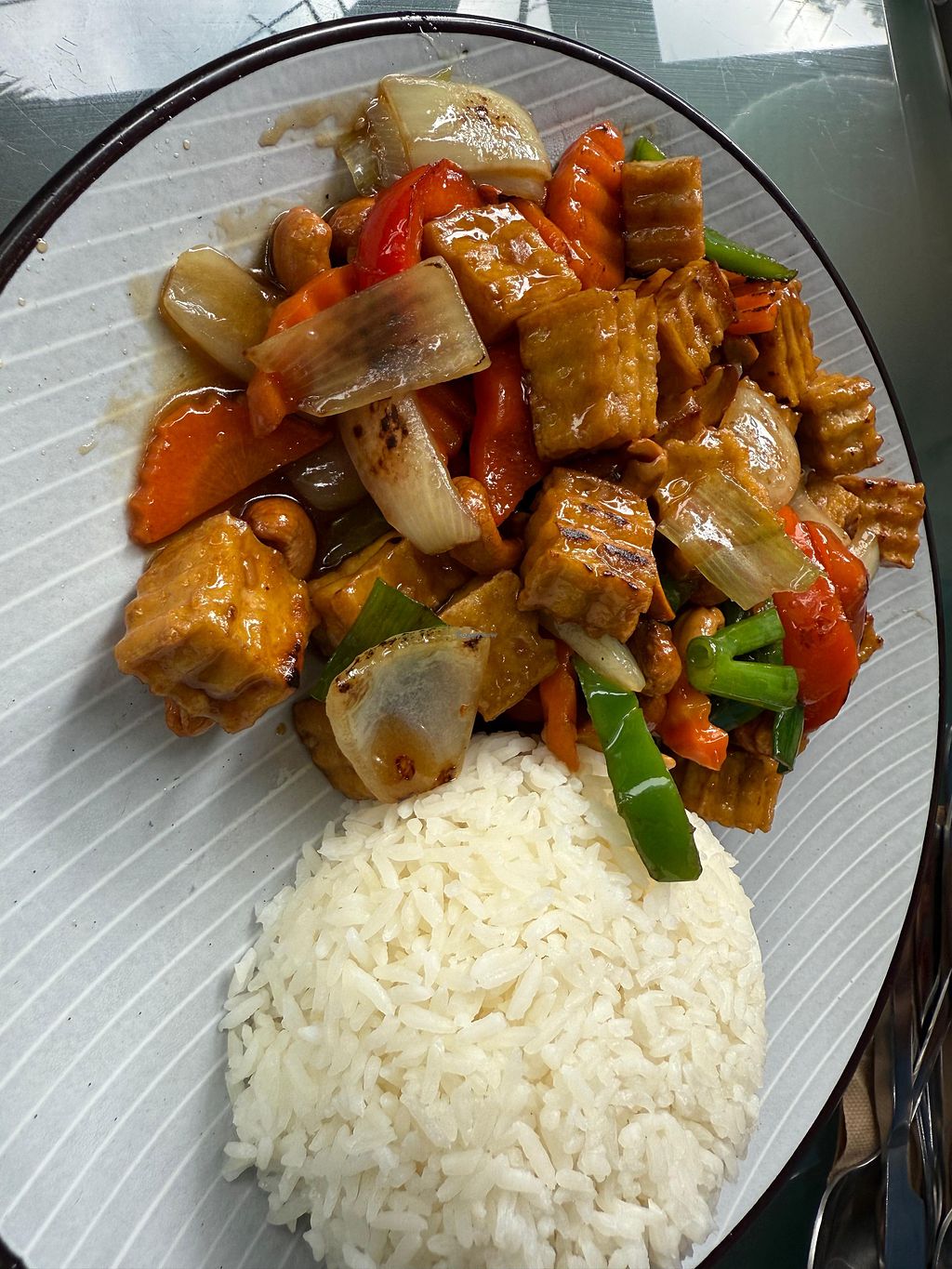 Thai Kai menu. Vegan options marked “V”.