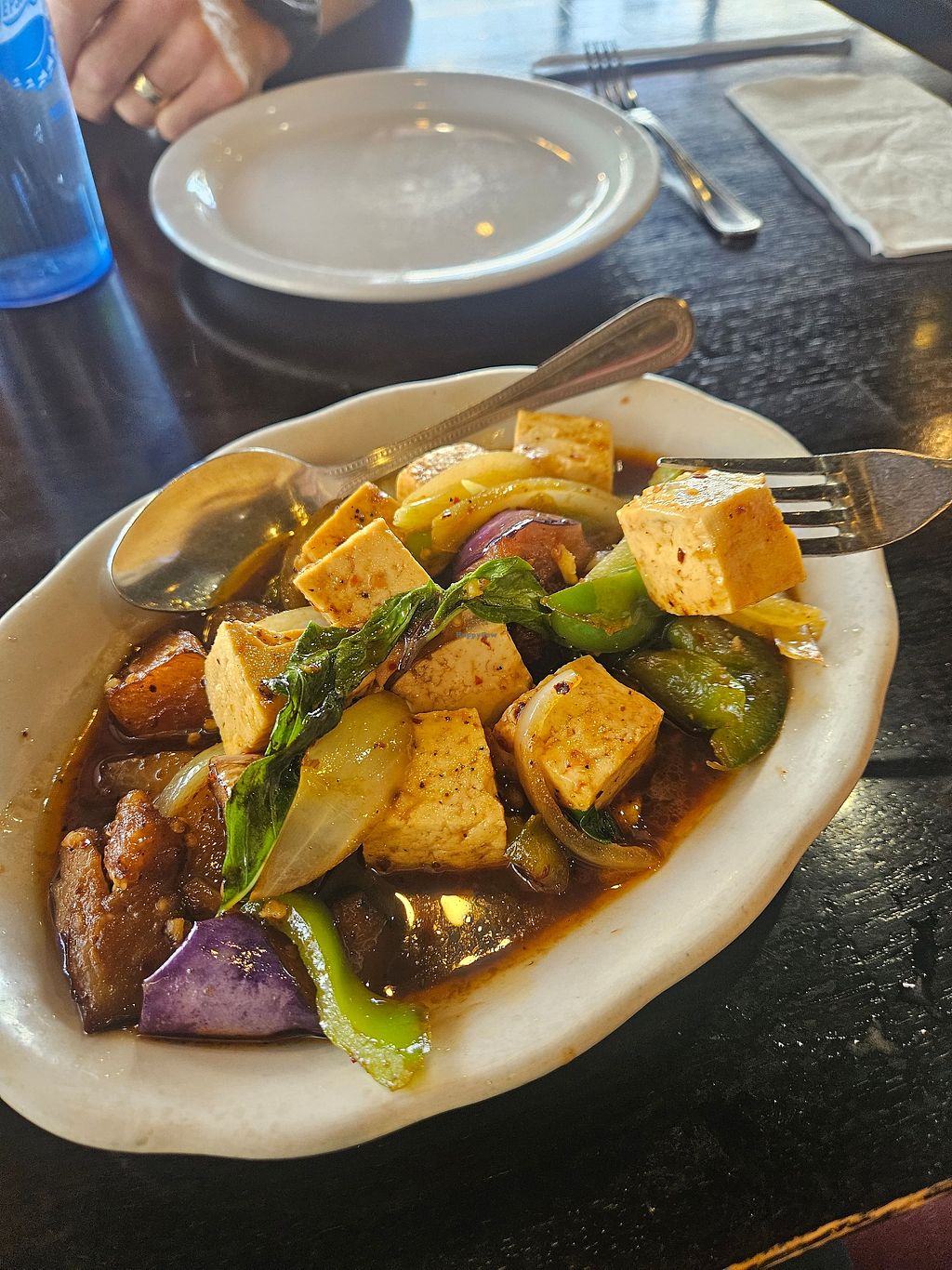 Really enjoyed the tofu red curry and eggplant lover's dishes. Delightful server and swift service, too. And they don't premix their Thai iced tead, so I could have it without dairy. YAY!!!