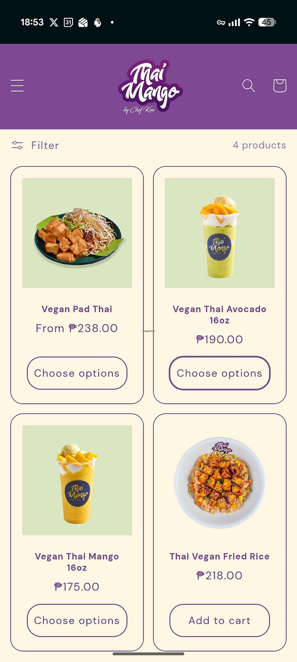 Vegan options from their website