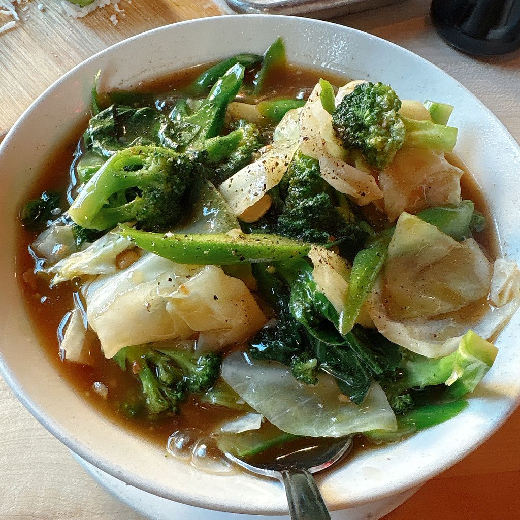 I love the coconut tofu and vegan noodle options. You do have to specify to have food cooked in a separate fryer if you want truly vegan dishes.