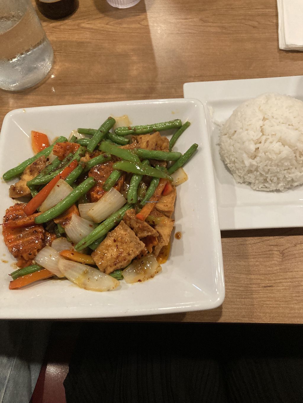 Serves meat, vegan options available. Thai restaurant with vegetarian dishes that can easily be made vegan upon request. Example offerings include noodles, fried rice, glass noodle salad, stir-fry and more. Specify no egg or fish/oyster sauce when ordering. Open Mon-Sun 11:00am-8:30pm.
