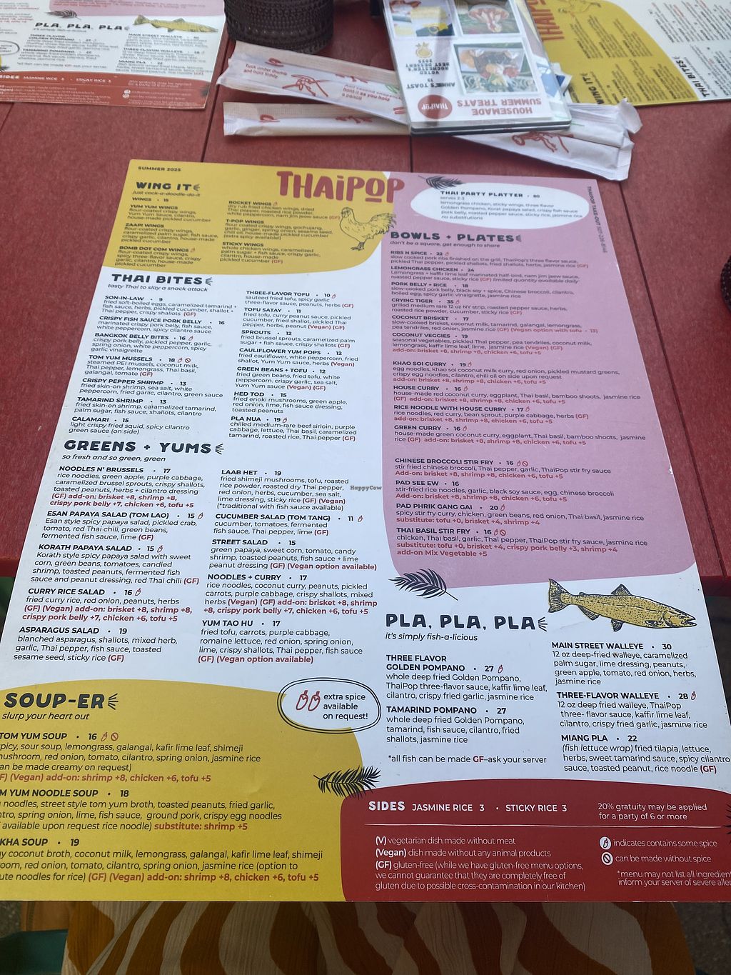 I suggested this place for the family to eat tonight. I’m the only vegan so I didn’t need a ton of options. We ordered the cauliflower yum pops and I ordered the vegan massaman curry with tofu and the vegan Thai Tea. I asked for spice, and they gave me additional chili oil to add to my dish so I could add the level of spice I liked. Everyone thought the food was delicious and it’s such a fun atmosphere. If you plan on eating on Friday or Saturday, I’d say make a reservation. This place was pretty busy for a Wednesday night.
