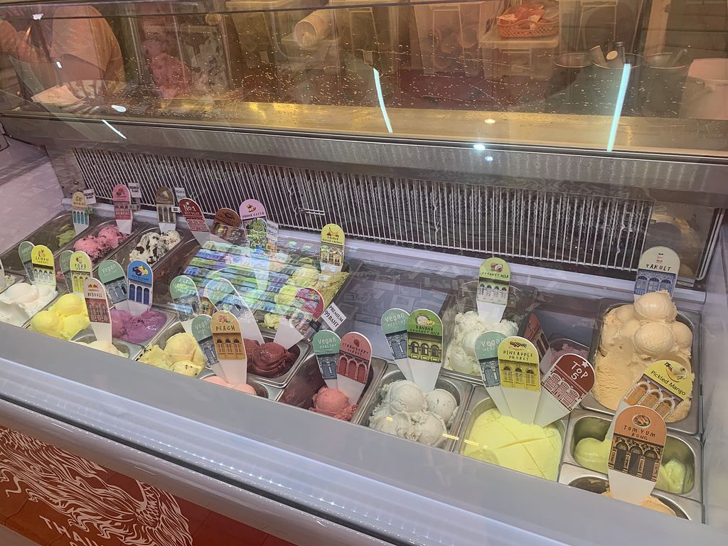 A lot of unusual ice cream - wasabi, tom yam, beer... And few sorbets.