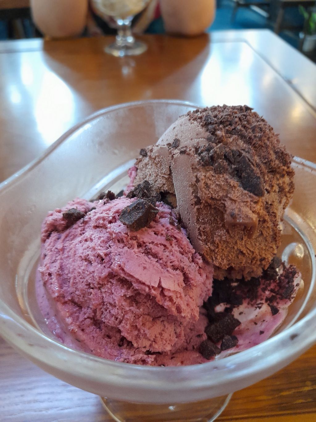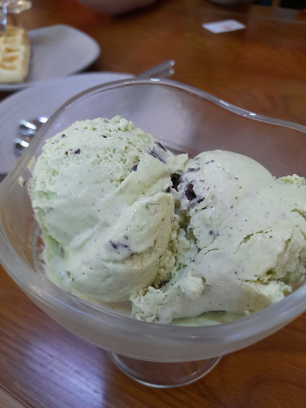 Waffle with vanilla cookie ice cream (45.000 VND)